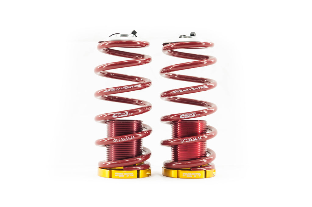 Springs: We are pleased to announce that Eibach has chosen Ground Control as the west coast distributor for their ERS (Eibach Race Spring) line of springs. All of our ride height adjustable kits now exclusively feature Eibach springs. All racing and street/show spring rates are available. All Eibach springs offer a lifetime warranty against spring rate change and sagging.