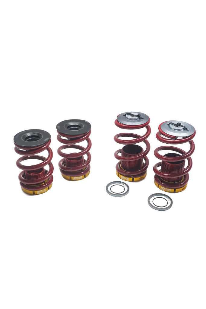 This spring kit gives you the option to customize the ride height of your vehicle. After several years of use in racing applications, Ground Control spring kits have been adapted for street use. Most other spring kits offer only one set ride height when installed. The Ground Control system's unique design allows for easy adjustment. Simply lift the corner(s) of the vehicle that you wish to adjust and spin the adjustable spring seat up or down to raise or lower the vehicle*. Ground Control spring kits are also designed to be used with either stock or aftermarket shocks.