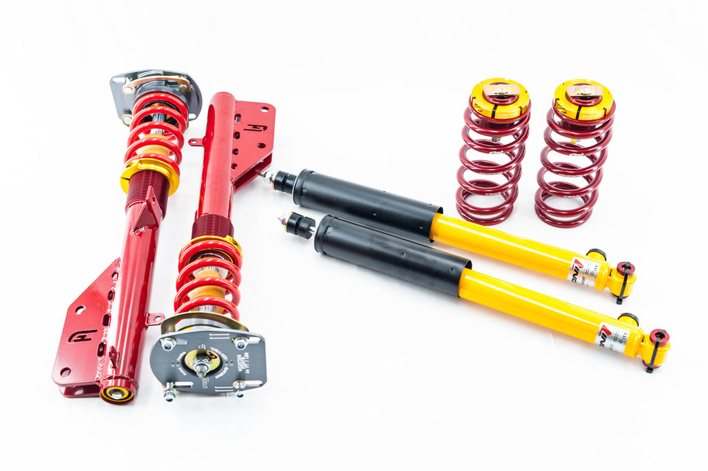 Koni Single Adjustable Front Strut - Struts are externally adjustable from underneath the hood, even with the factory strut brace. This strut is prepared for coil over use, and eliminates machining of critical suspension components.