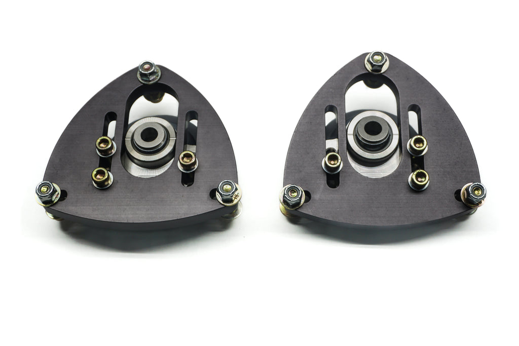 Bolt-in, no drilling, camber and caster adjustable upper mounts for your Mazda RX-3.