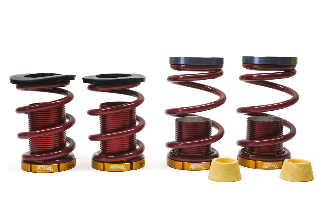 This spring kit gives you the option to customize the ride height of your vehicle. After several years of use in racing applications, Ground Control spring kits have been adapted for street use. Most other spring kits offer only one set ride height when installed. The Ground Control system's unique design allows for easy adjustment. Simply lift the corner(s) of the vehicle that you wish to adjust and spin the adjustable spring seat up or down to raise or lower the vehicle*. Ground Control spring kits are also designed to be used with either stock or aftermarket shocks.