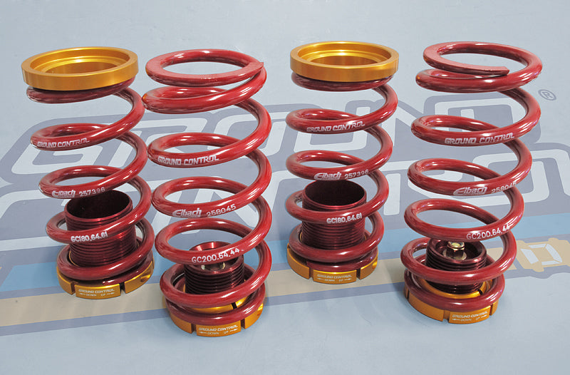 Springs: We are pleased to announce that Eibach has chosen Ground Control as the west coast distributor for their ERS (Eibach Race Spring) line of springs. All of our ride height adjustable kits now exclusively feature Eibach springs. All racing and street/show spring rates are available. All Eibach springs offer a lifetime warranty against spring rate change and sagging.