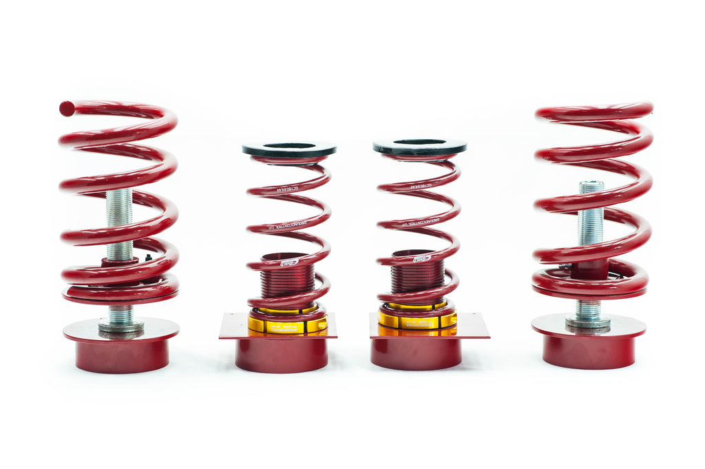 This spring kit gives you the option to customize the ride height of your vehicle. After several years of use in racing applications, Ground Control spring kits have been adapted for street use. Most other spring kits offer only one set ride height when installed. The Ground Control system's unique design allows for easy adjustment. Simply lift the corner(s) of the vehicle that you wish to adjust and spin the adjustable spring seat up or down to raise or lower the vehicle*. Ground Control spring kits are also designed to be used with either stock or aftermarket shocks.