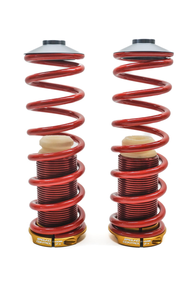This spring kit gives you the option to customize the ride height of your vehicle. After several years of use in racing applications, Ground Control spring kits have been adapted for street use. Most other spring kits offer only one set ride height when installed. The Ground Control system's unique design allows for easy adjustment. Simply lift the corner(s) of the vehicle that you wish to adjust and spin the adjustable spring seat up or down to raise or lower the vehicle*. Ground Control spring kits are also designed to be used with either stock or aftermarket shocks.