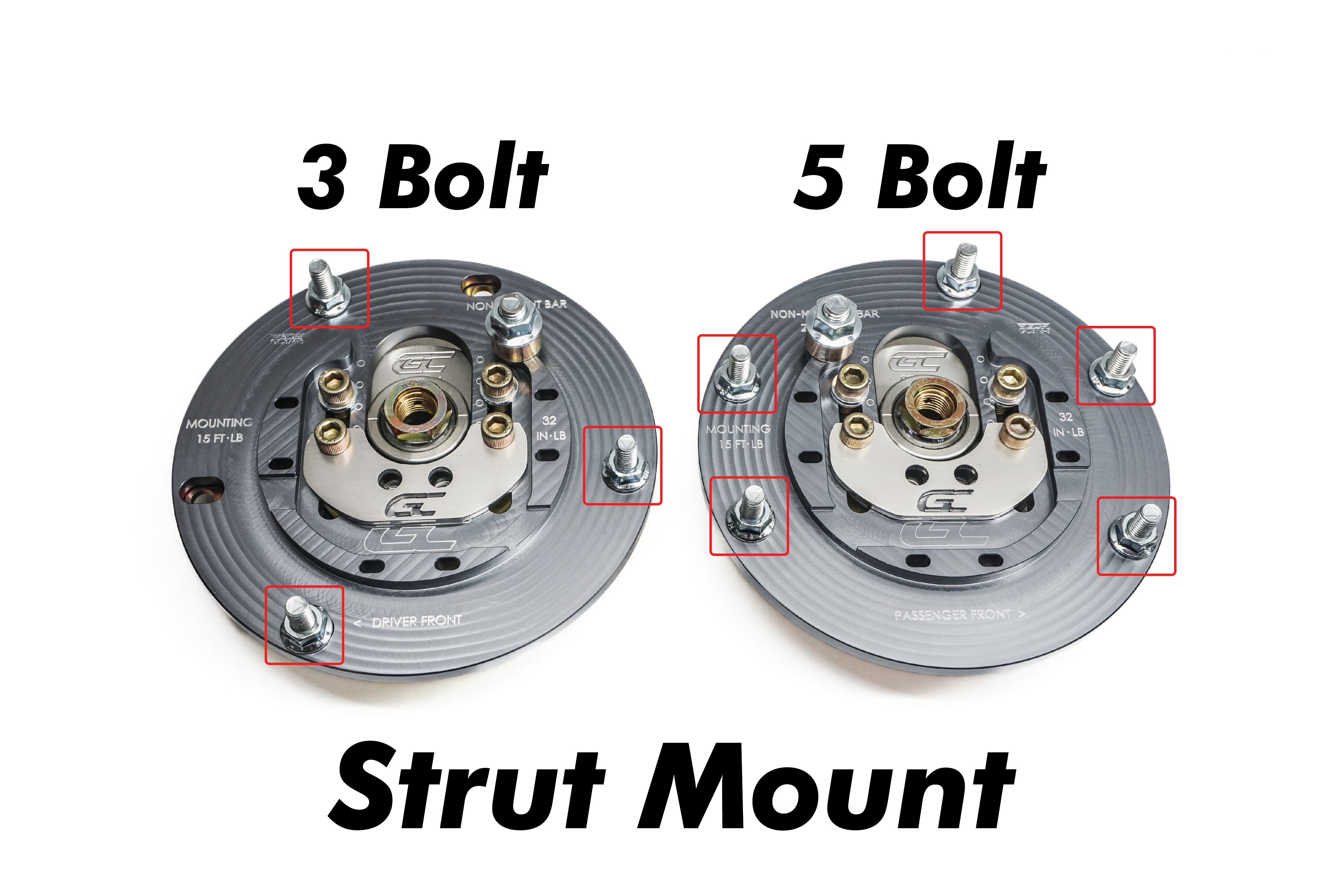Our camber plates are also engraved with the Ground Control logo and markings which can be used to locate the plate in the stock position for easy, fast adjustments.