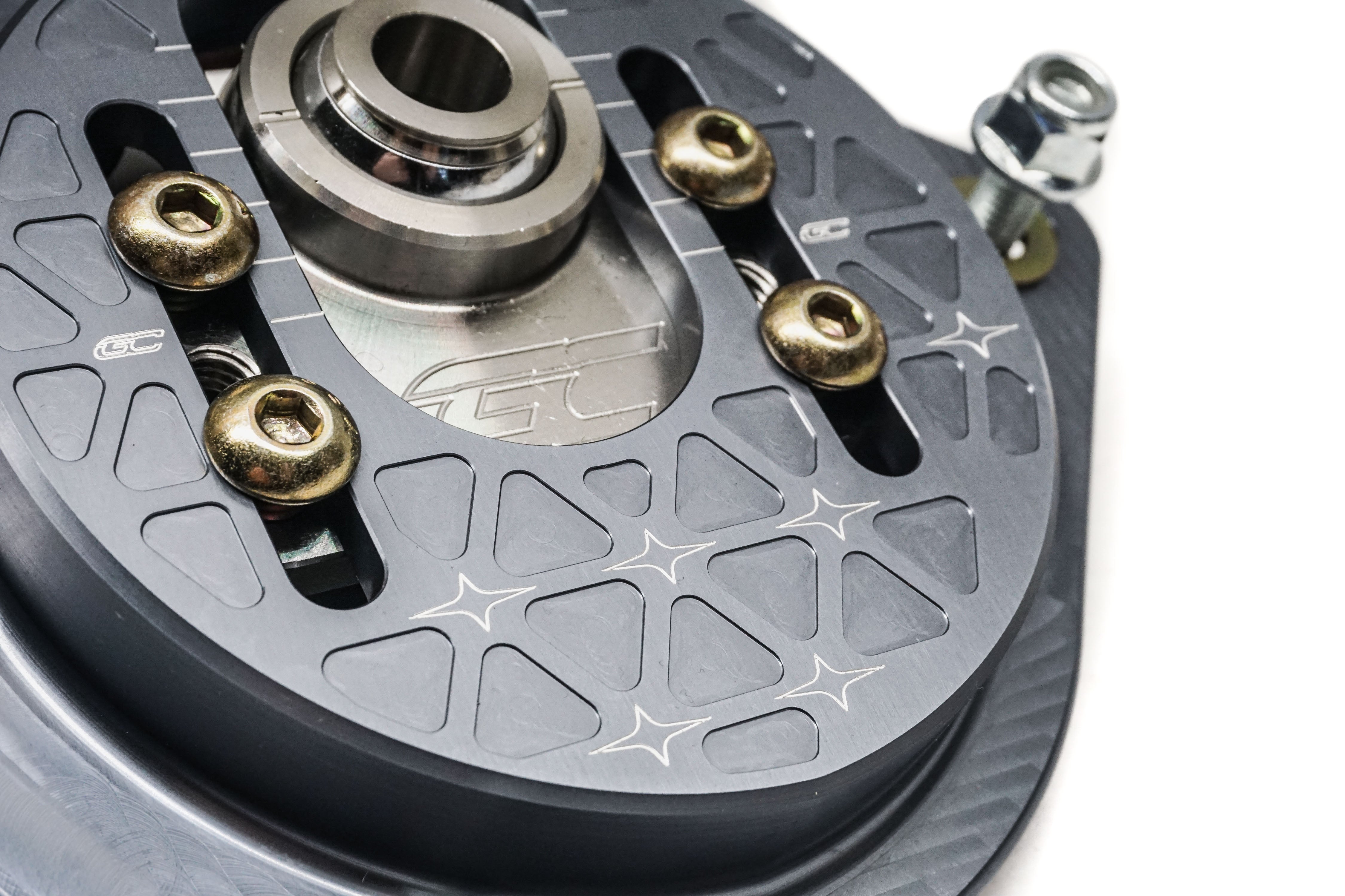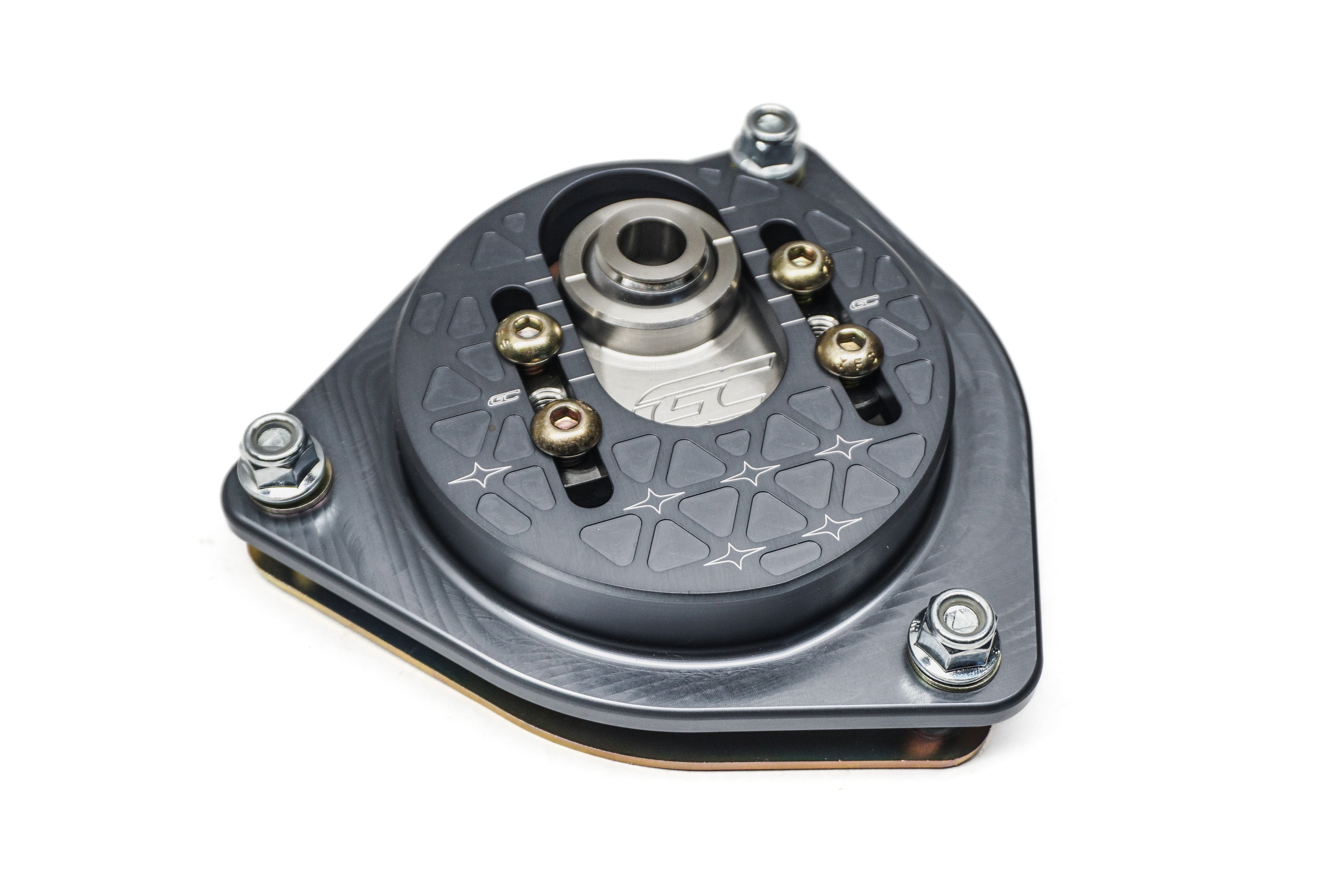 On top of that, our camber plates are unique in that they preserve bump travel - just like the factory strut mounts that come on these cars. Most other camber plates for these chassis are a flat bottom mount design, often reducing your bump travel by 15mm. With our camber/caster plates, there is ZERO loss of bump travel.
