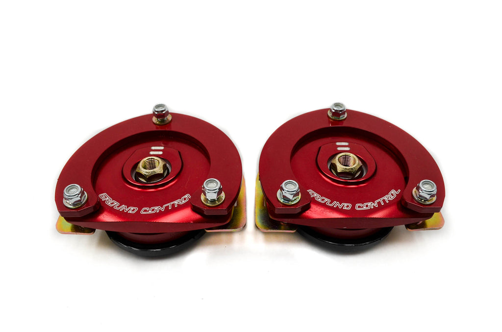 The Ground Control STREET/SPORT plate, a special version of our camber/caster plates, toned down for dual-purpose cars. These plates use a proprietary upper spring perch. A work of art, carved from a single piece of billet aluminum. That is the only way to describe this new street camber plate from Ground Control.